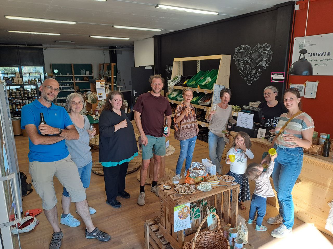 À l’occasion de l’inauguration et première ouverture de l’épicerie, une bonne partie des coopérateur-rices se sont réunis pour un apéritif et leurs premiers achats.